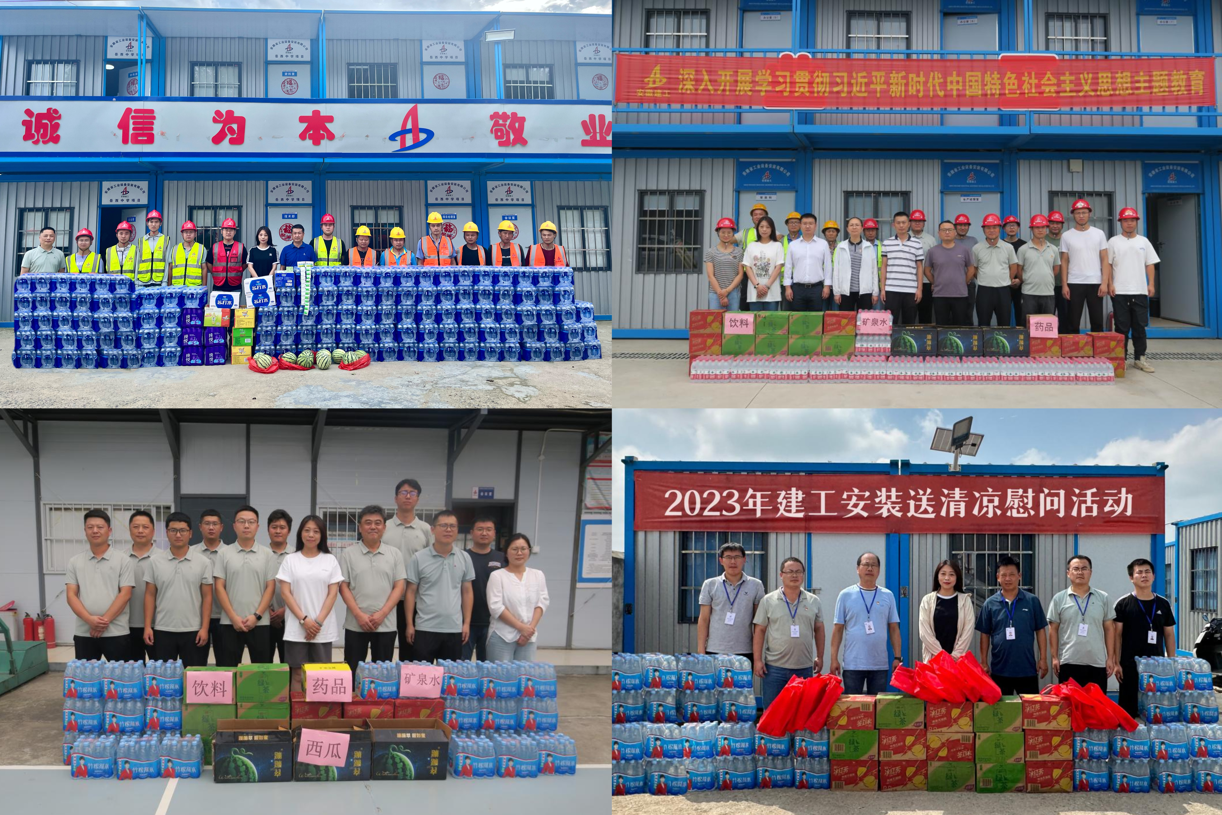 合肥分公司工會(huì)購(gòu)置了礦泉水、飲料、西瓜、藥品等防暑降溫物品,走入施工現(xiàn)場(chǎng),來(lái)到項(xiàng)目一線,先后去往岳西中學(xué)項(xiàng)目、肥西安信立士項(xiàng)目、高鐵路初中及高鐵路小學(xué)項(xiàng)目、新橋機(jī)場(chǎng)T2航站樓項(xiàng)目等,不僅送上了慰問(wèn)品,也叮囑他們要合理調(diào)整作息時(shí)間,確保身體健康和施工安全。真正把清涼送到了基層項(xiàng)目一線,把關(guān)懷送到了職工群眾心坎里。