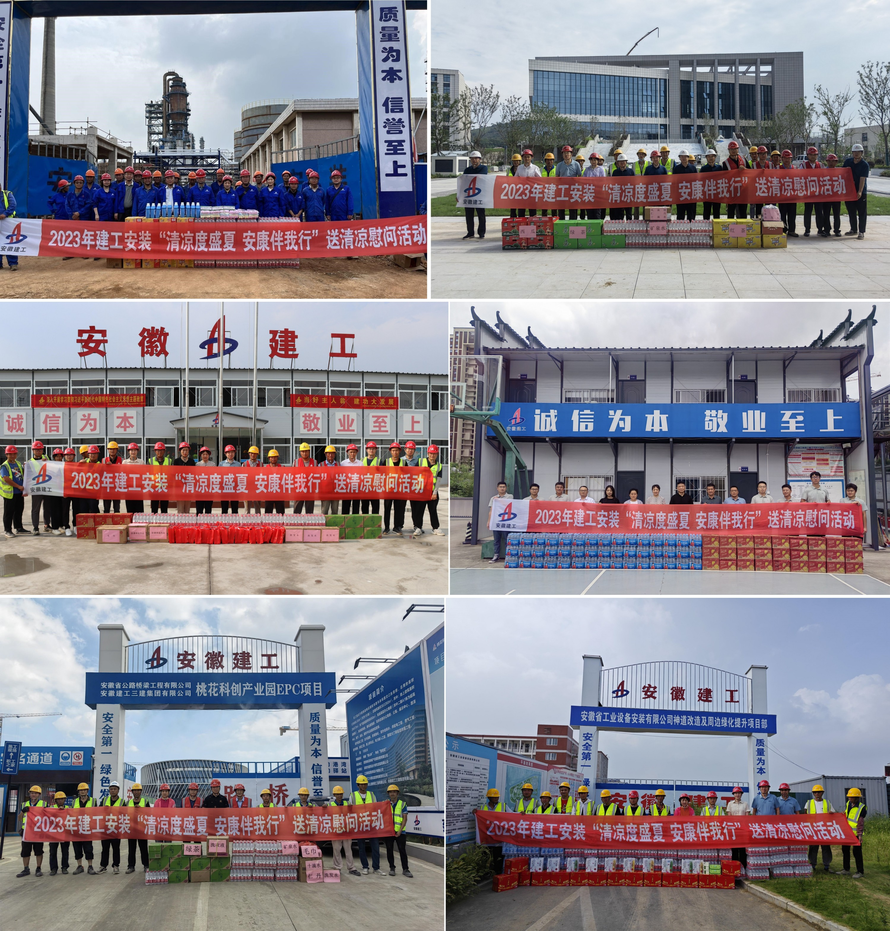 此次慰問先后來(lái)到中石化安慶分公司循環(huán)水排污水治理項(xiàng)目、蚌埠市公安局“三個(gè)基地”項(xiàng)目、阜南縣城南污水處理廠改擴(kuò)建及配套管網(wǎng)工程(廠區(qū)工程)、合肥市高鐵路初中及高鐵路小學(xué)項(xiàng)目、桃花科創(chuàng)產(chǎn)業(yè)園EPC項(xiàng)目、神道改造含停車場(chǎng)及周邊綠化提升項(xiàng)目等施工一線,給大家送去西瓜、礦泉水、王老吉、仁丹等防暑降溫物品及夏日清涼洗護(hù)用品,為高溫下堅(jiān)守工作崗位的一線職工送去清涼和關(guān)懷。