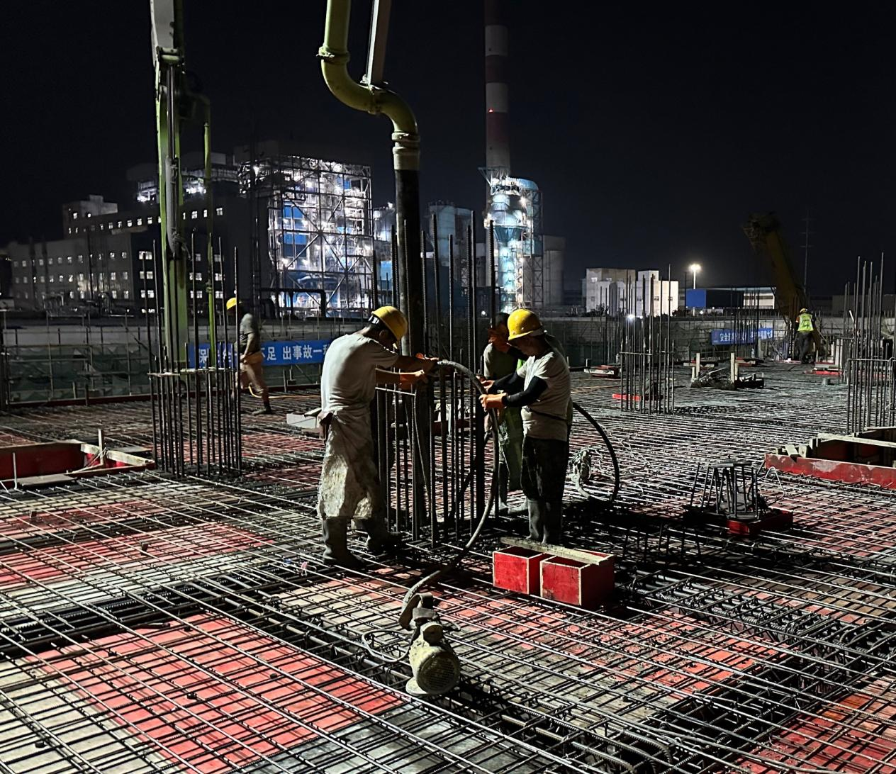 地上一層澆筑前,項(xiàng)目部做了精心施工準(zhǔn)備,領(lǐng)導(dǎo)班子每晚組織召開工程進(jìn)度協(xié)調(diào)會(huì),對(duì)分包單位提出的問題,當(dāng)即答疑,分解次日勞動(dòng)競賽工作任務(wù)。同時(shí),項(xiàng)目部編制夜班值班制度,指導(dǎo)、督促、檢查夜班中出現(xiàn)的問題,確保工程進(jìn)度有序推進(jìn)。任務(wù)分解下去,各施工班組馬上投入到準(zhǔn)備工作中,卯足了勁,一定要完成任務(wù)。搶工恰逢夏日高溫、梅雨季節(jié)反復(fù)期間,客觀條件受限,為施工生產(chǎn)帶來困難,項(xiàng)目部利用夜間搶抓施工任務(wù),在雨水到來前盡可能多的進(jìn)行施工,推進(jìn)生產(chǎn)進(jìn)度。