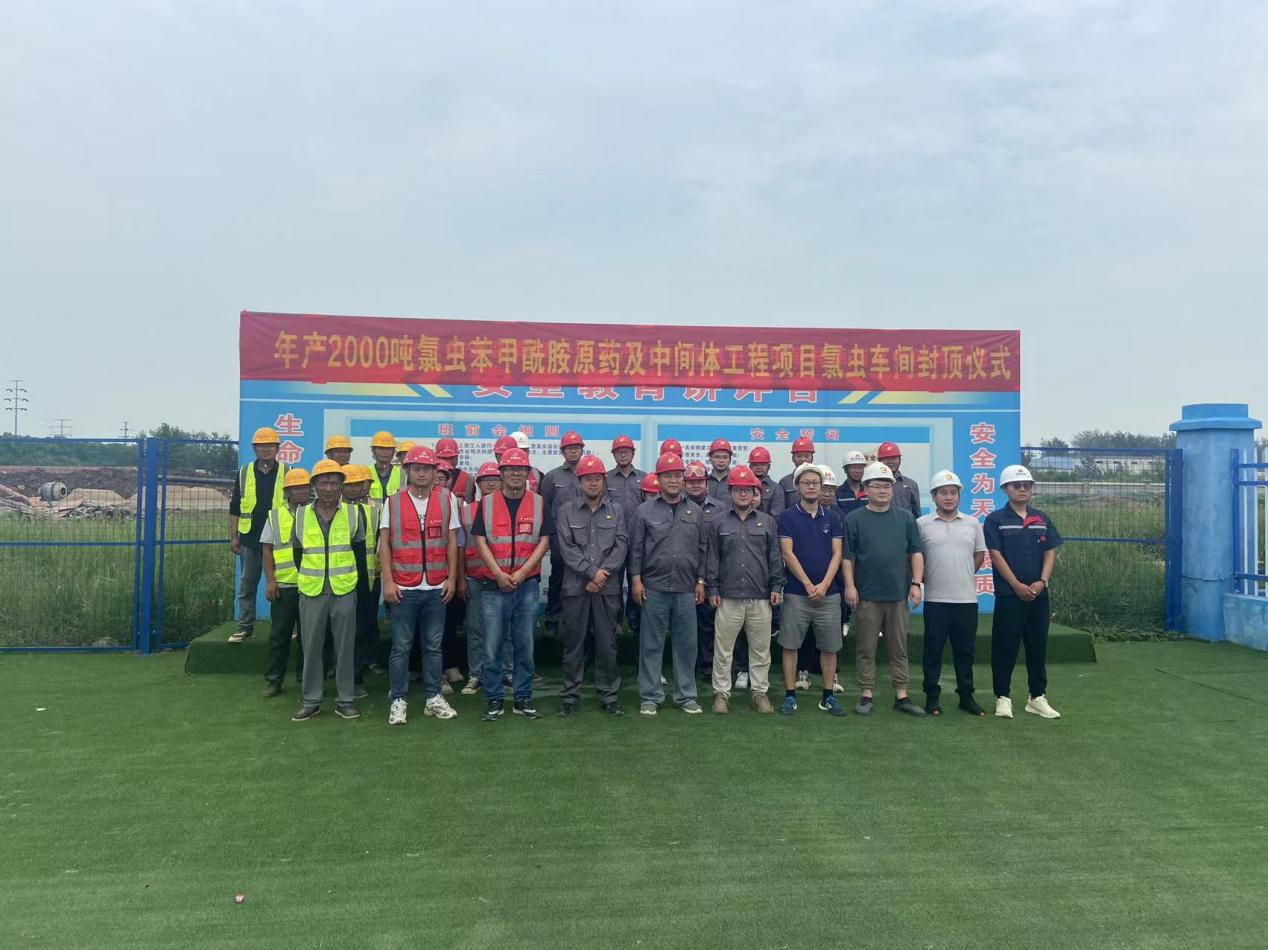 8月31日,蚌埠市淮上區(qū)化工園區(qū)內(nèi)年產(chǎn)2000噸氯蟲苯甲酰胺原藥及中間體項(xiàng)目氯蟲一號車間,伴隨著最后一方混凝土澆筑到位,聳立的車間主體被“封頂大吉”的大紅條幅和紅色祝福標(biāo)語裝點(diǎn)得格外喜慶!建設(shè)單位、監(jiān)理單位、施工單位等共同參加了封頂儀式。