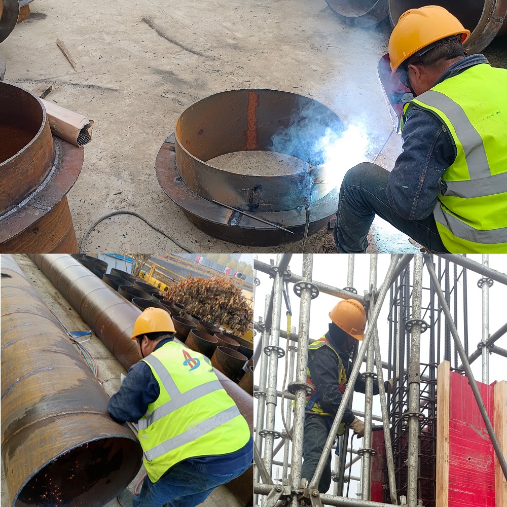 圖為:合肥七水廠三期項(xiàng)目防水套管加工焊接制作和預(yù)埋活性碳濾池管廊電氣配管安裝施工