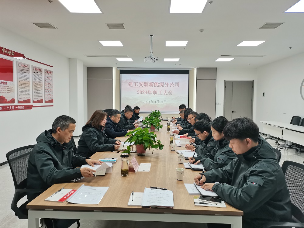 陽春三月潤萬物,揚帆奮進(jìn)正當(dāng)時。3月27日下午,建工安裝新能源分公司順利召開首次職工大會,此次會議既是統(tǒng)一思想、謀篇布局的動員會,也是部署任務(wù)、推進(jìn)發(fā)展的工作會。公司財務(wù)總監(jiān)李雷應(yīng)邀出席會議并講話。會議由分公司黨支部書記劉紅艷主持,分公司全體員工參加會議。
