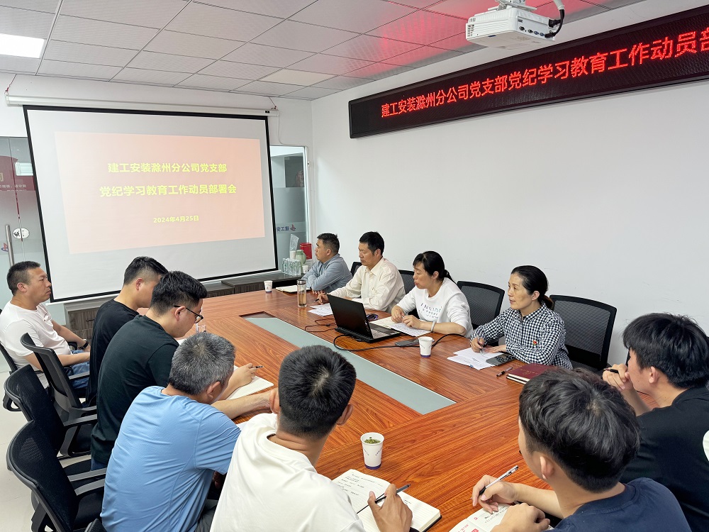 4月25日下午,建工安裝滁州分公司黨支部召開(kāi)黨紀(jì)學(xué)習(xí)教育動(dòng)員部署會(huì)。學(xué)習(xí)貫徹習(xí)近平總書(shū)記關(guān)于全面加強(qiáng)黨的紀(jì)律建設(shè)的重要論述,傳達(dá)學(xué)習(xí)黨中央關(guān)于黨紀(jì)學(xué)習(xí)教育的決策部署和集團(tuán)公司及公司黨委相關(guān)工作要求。分公司領(lǐng)導(dǎo)班子成員、全體黨員、部分機(jī)關(guān)部門(mén)負(fù)責(zé)人等參加會(huì)議。