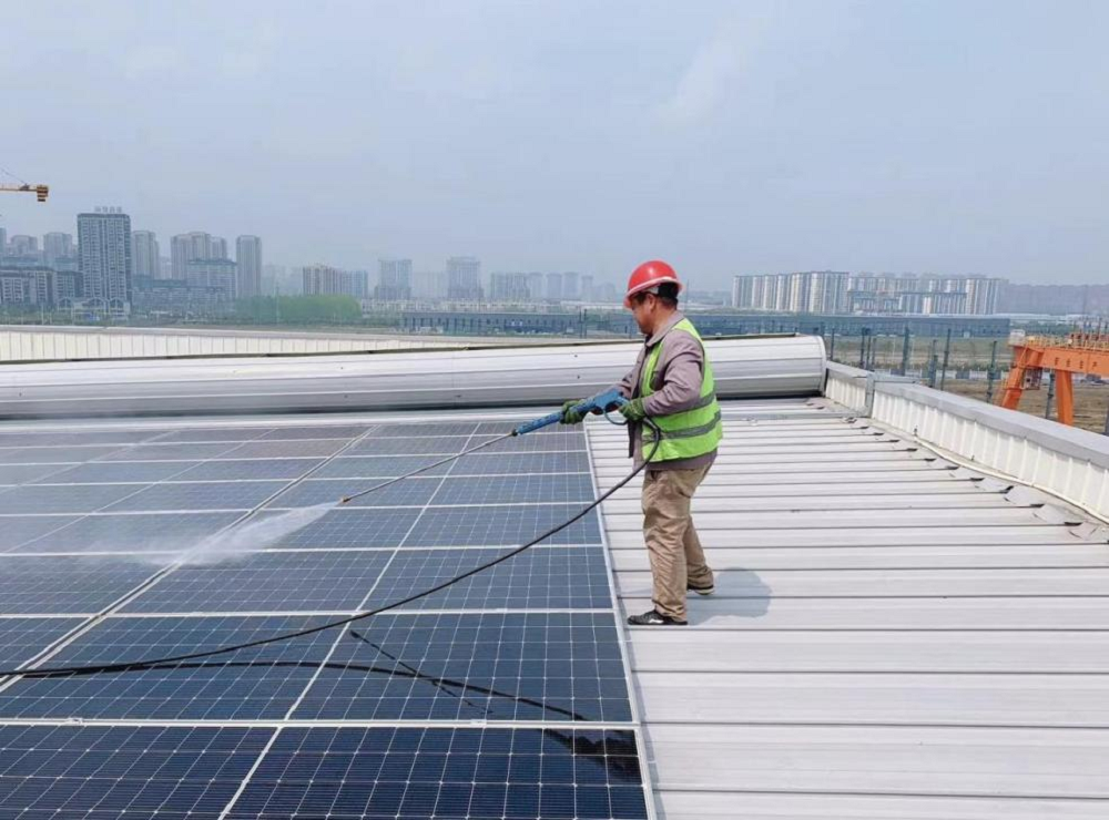 “灰層遮擋了光伏板的主體,而此刻我手中的高壓水槍,猶如一把犀利的掃帚,能夠快速清除板面的泥土和污垢,既節(jié)省了人力和時間,又進一步提高了發(fā)電效益。清洗后的光伏板,仿佛獲得了源源不斷的動力,不知疲倦地輸出著清潔能源?!?/span>