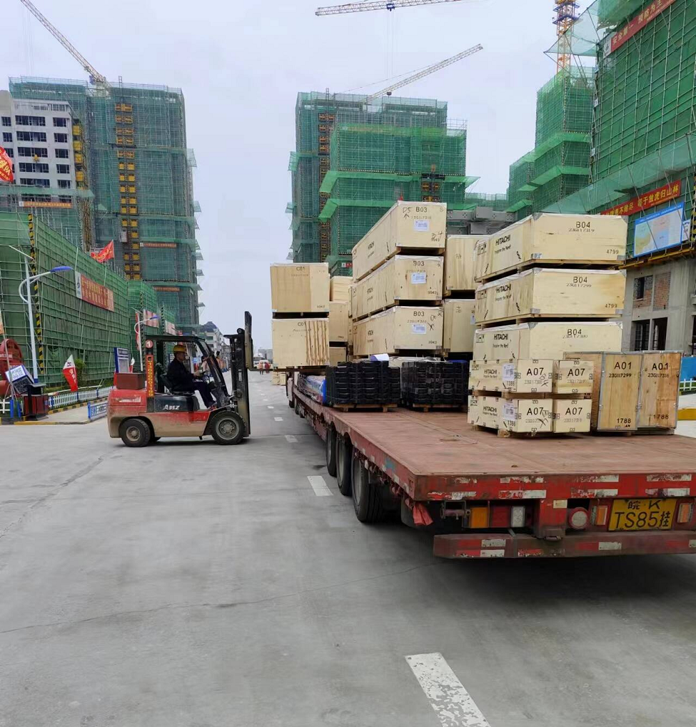 肥西縣鄉(xiāng)村文化旅游配套提升項(xiàng)目現(xiàn)場(chǎng)人員正在給到貨電梯卸貨