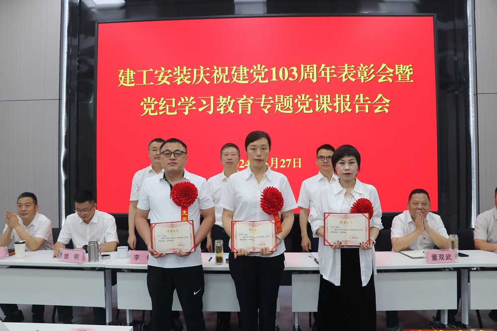 為慶祝中國共產(chǎn)黨成立103周年,扎實(shí)推進(jìn)黨紀(jì)學(xué)習(xí)教育走深走實(shí)。6月27日上午,建工安裝黨委召開慶祝建黨103周年表彰會(huì)暨黨紀(jì)學(xué)習(xí)教育專題黨課報(bào)告會(huì)。公司領(lǐng)導(dǎo)班子成員出席會(huì)議,會(huì)議由公司黨委副書記、副總經(jīng)理周正平主持。