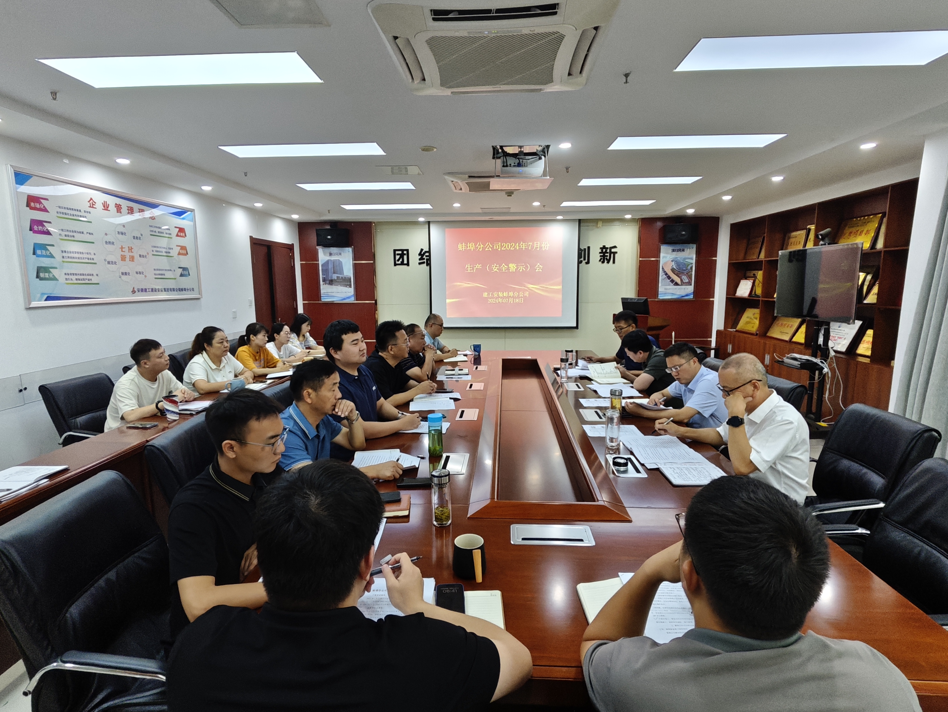 7月18日上午,蚌埠分公司組織召開7月份生產(chǎn)(安全警示)會,分公司領(lǐng)導班子、所屬各項目經(jīng)理、機關(guān)各部門負責人及工程管理部全體員工參加會議,會議由副經(jīng)理張斌主持。