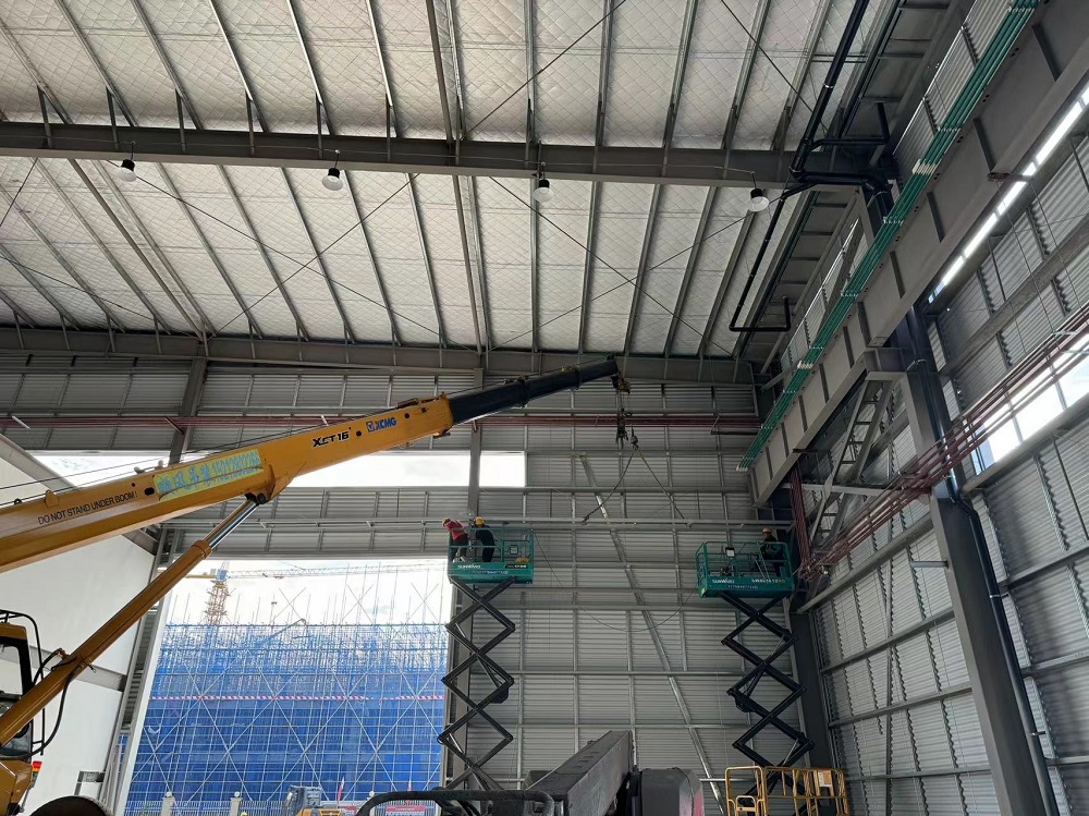 目前項目施工現(xiàn)場100多名工人各司其職,進行2#重鋼車間廠房橋架、消防系統(tǒng)、氣體管道、裝修、圍護結構、門窗、通風氣樓、設備基礎等安裝。同時為應對持續(xù)高溫天氣,項目部合理安排作業(yè)時間,做好后勤保障工作,現(xiàn)場不間斷巡查時刻關注工人狀態(tài),在確保施工人員健康和安全的前提下,全力以赴加快廠房項目建設進度,預計7月26日前完成大部分項目內(nèi)容的施工任務。