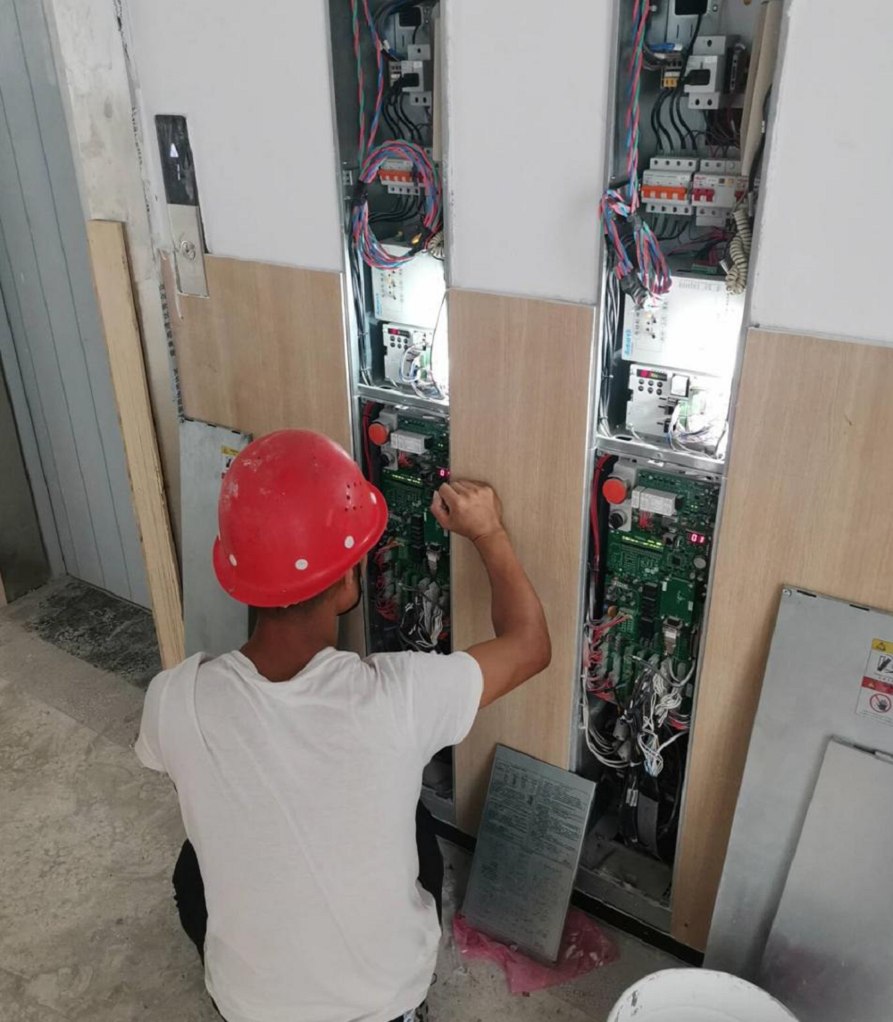 蚌埠自貿(mào)區(qū)山香學(xué)校項(xiàng)目施工人員正在進(jìn)行無機(jī)房電梯檢驗(yàn)