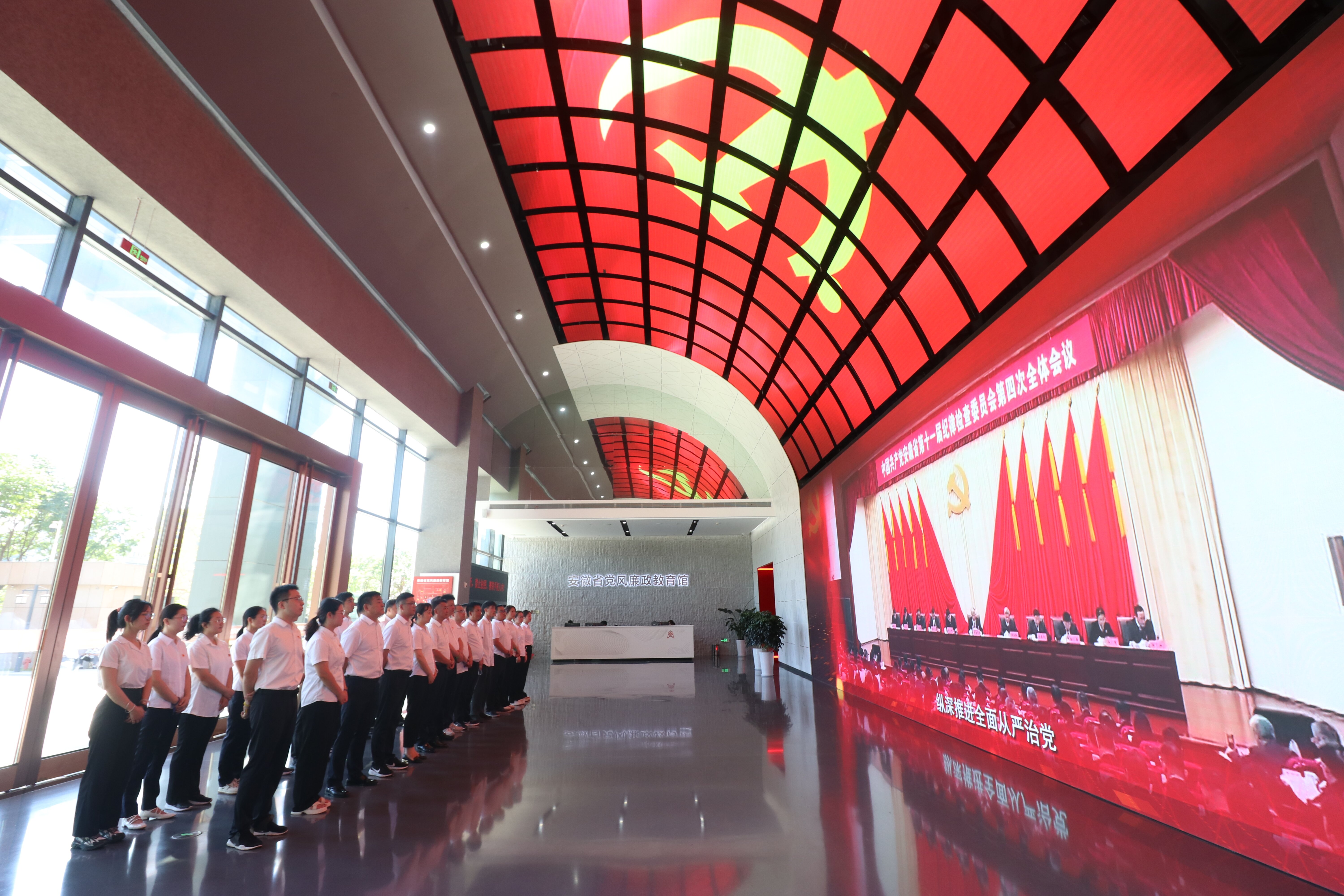 進入教育館,全體人員集中觀看了《永遠在路上》專題片。隨后,依次參觀了“紀律立黨·從嚴治黨”“廉潤江淮·清風揚帆”“以案為鑒·警鐘長鳴”“不忘初心·永葆清廉”四個展廳。跟隨著講解員的步伐,通過聆聽講解、觀看視頻圖片、場景還原、體驗空間等形式,全方位學習回顧了建黨百年來的紀律建設史,以及安徽省委落實全面從嚴治黨、深入開展黨風廉政建設和反腐敗斗爭的豐碩成果。一組組觸目驚心的數(shù)字、一幕幕聲淚俱下的懺悔、一段段發(fā)人深省的旁白,令參觀的黨員干部職工受警醒、明底線、知敬畏。參觀結(jié)束后,全體黨員面向黨旗,舉起右手,莊嚴宣誓,重溫入黨時的承諾,在鏗鏘有力的宣誓聲中回望初心使命。本次活動大家還集中觀看了30分鐘警示教育片。