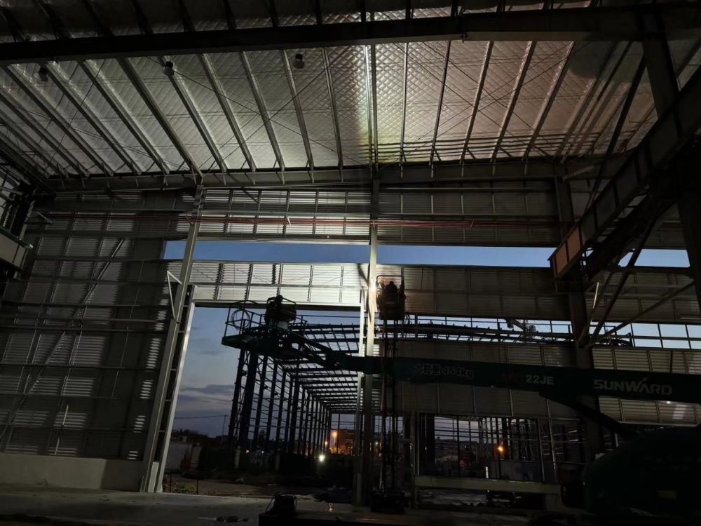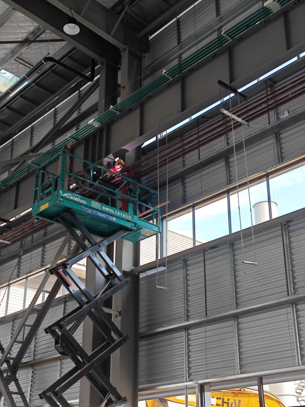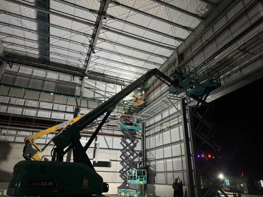 建工安裝合肥分公司施工內(nèi)容涉及2#重鋼車間主次構(gòu)安裝、圍護(hù)系統(tǒng)、門窗、防火涂料、通風(fēng)氣樓和機(jī)電安裝工程(裝飾裝修、工藝管線、消防、給排水、電氣、通風(fēng)空調(diào)等)。為保質(zhì)保量完成施工任務(wù),分公司派駐分管領(lǐng)導(dǎo)現(xiàn)場駐點(diǎn),項目管理團(tuán)隊日夜跟進(jìn),施工人數(shù)達(dá)到100多人,曲臂車、登高車等各種現(xiàn)場施工機(jī)械達(dá)60余輛。本項目留給機(jī)電安裝工期緊任務(wù)重,項目全體人員日夜奮戰(zhàn),最終刷新15日大面完工耀眼戰(zhàn)績,為基地順利投產(chǎn)奠定堅實基礎(chǔ)。