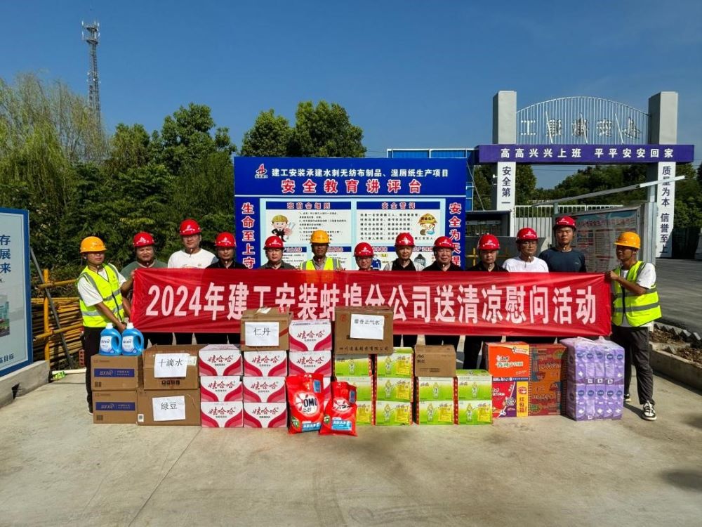 分公司領導班子先后到六鋼大廈(酒店)工程施工總承包項目、蚌埠高新區(qū)電子信息產業(yè)園EPC項目室外廊架管網工程項目、年產2000噸氯蟲苯甲酰胺原藥及中間體項目、安徽深巖醫(yī)藥化工科技有限公司醫(yī)藥中間體及新材料項目廠區(qū)單體工程項目、水刺無紡布制品.濕廁紙生產項目現場,為一線施工人員準備了礦泉水、冰紅茶、綠豆、西瓜等防暑降溫物品,對他們的辛勤付出表示感謝,并反復叮囑大家要注意防暑降溫,合理安排施工和休息時間,確保施工安全。