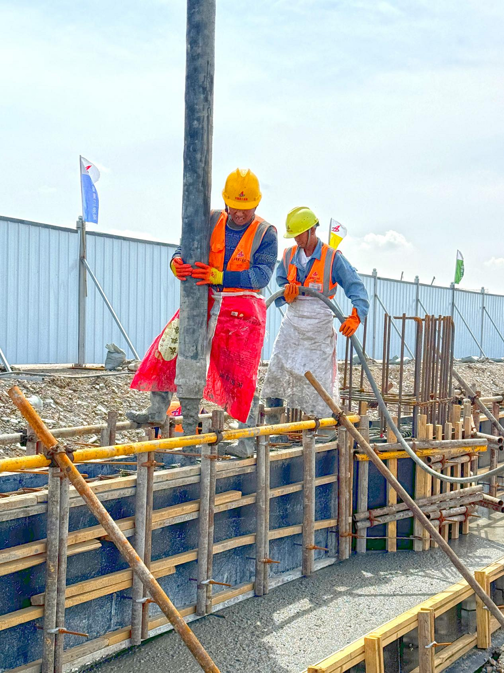 該項(xiàng)目施工現(xiàn)場人頭攢動,機(jī)械轟鳴,駐場技術(shù)人員頭頂烈日、靠前指揮,施工工人往來穿梭,或支設(shè)模板,或綁扎鋼筋,與夏競速,“激戰(zhàn)”正酣。項(xiàng)目工期緊任務(wù)重,為搶進(jìn)度、嚴(yán)安全、保工期、抓質(zhì)量,項(xiàng)目部嚴(yán)格制定施工進(jìn)度計(jì)劃,統(tǒng)籌安排施工人、材、機(jī),合理高效進(jìn)場施工作業(yè),目前項(xiàng)目正在進(jìn)行變電所及廠房的基礎(chǔ)工程。