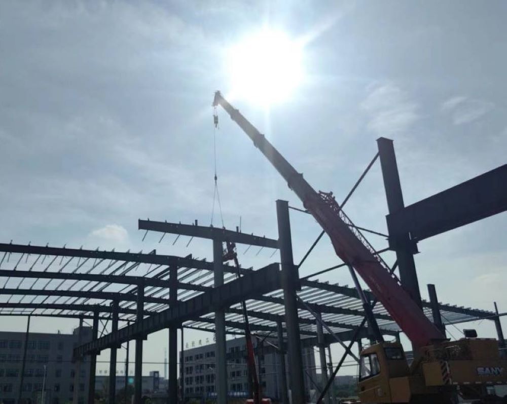 目前1-18軸鋼柱已全部安裝完成,1-6軸柱撐、鋼梁、屋面檁條已安裝結(jié)束。同時(shí)應(yīng)對(duì)持續(xù)高溫天氣,項(xiàng)目部合理安排作業(yè)時(shí)間,施工人員分工協(xié)作,錨定節(jié)點(diǎn)目標(biāo),全力以赴趕工期、搶進(jìn)度。預(yù)計(jì)9月底完成建工鋼構(gòu)智能制造基地4#廠房項(xiàng)目全部工程量。