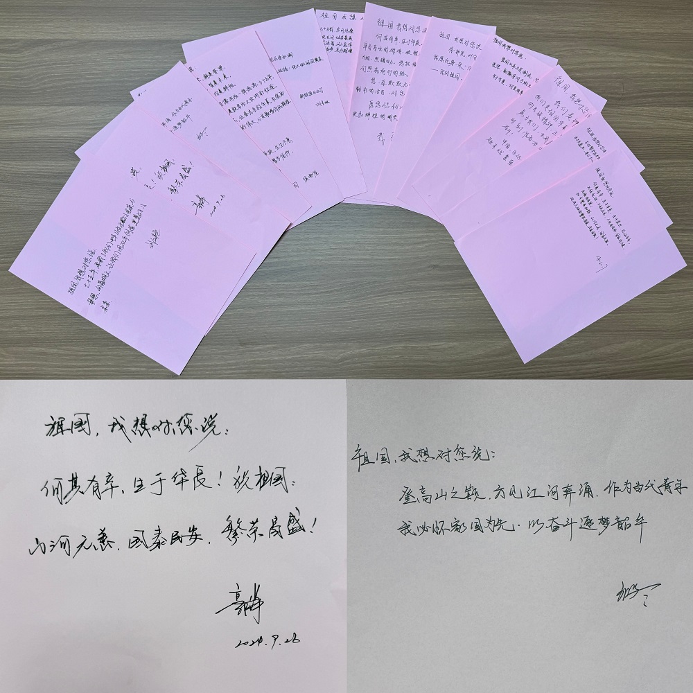 你看,這一句句真摯樸實(shí)的祝福,真情流露出我們對(duì)祖國(guó)的無(wú)比熱愛(ài)和深情告白:“七十五年,承載了我們中華兒女無(wú)數(shù)的光榮與夢(mèng)想;向著明天,讓我們用雙手創(chuàng)造更美好的未來(lái)?!薄坝幸环N花,叫向日葵,永遠(yuǎn)向著太陽(yáng)生長(zhǎng);此刻,我愿化身一朵“向日葵”,追隨我心中的“太陽(yáng)”——我的祖國(guó),祝您欣欣向榮、蒸蒸日上!”“我們是祖國(guó)未來(lái)的接班人,時(shí)刻準(zhǔn)備為中華民族的偉大騰飛而努力奮斗!”……