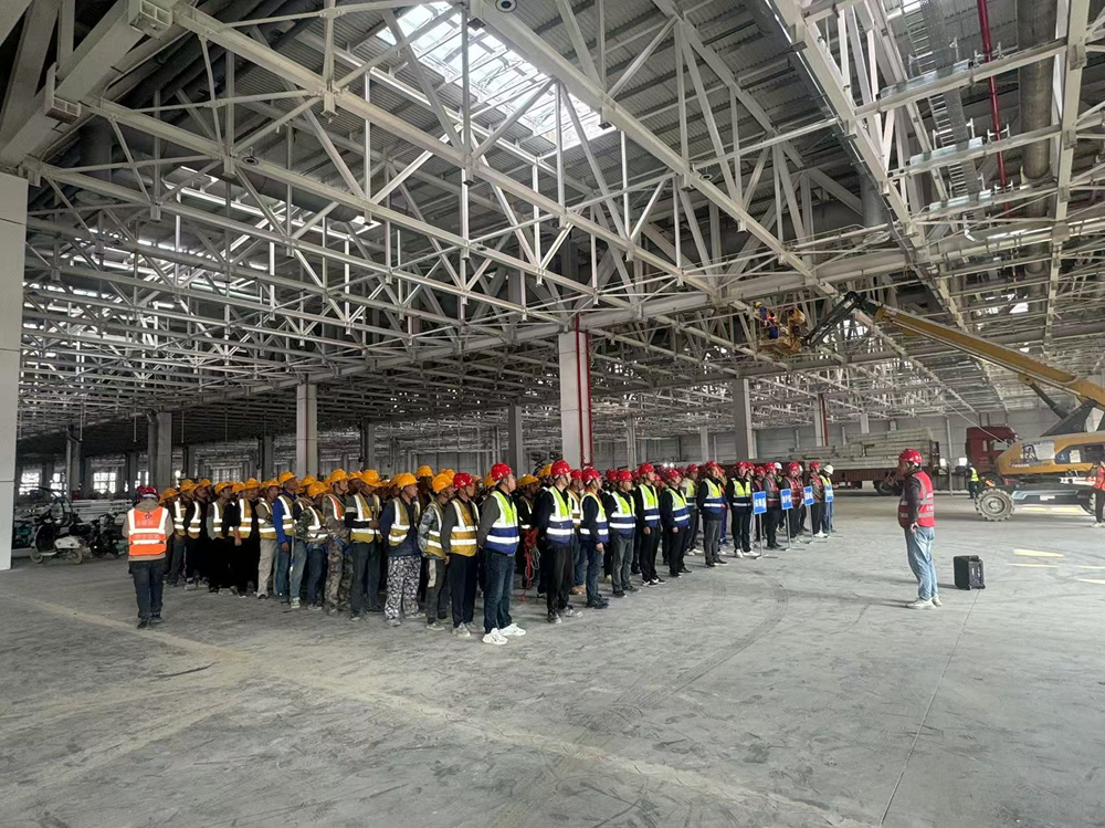 目前,焊裝車間循環(huán)水系統(tǒng)、消火栓系統(tǒng)、給排水系統(tǒng)、壓縮空氣已完成全部管道安裝任務(wù),進(jìn)入吹掃試驗(yàn)階段。電氣系統(tǒng)進(jìn)入電纜放線和柜體箱體安裝階段,暖通系統(tǒng)進(jìn)入屋頂閣樓安裝階段。