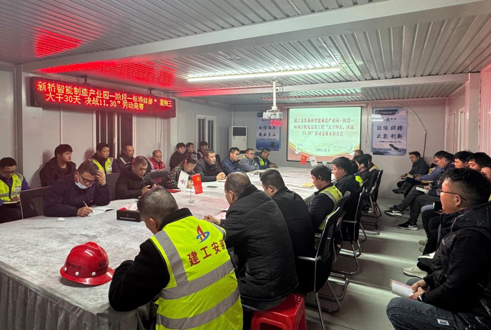 近日,建工安裝滁州分公司合肥新橋智能制造產(chǎn)業(yè)園一階段一標(biāo)機(jī)電安裝項(xiàng)目部召開“大干30天 決戰(zhàn)11.30”勞動(dòng)競賽總結(jié)表彰大會(huì),表彰競賽期間涌現(xiàn)出的先進(jìn)個(gè)人和優(yōu)勝參建班組。分公司勞動(dòng)競賽領(lǐng)導(dǎo)小組成員、項(xiàng)目部全體員工及參建班組負(fù)責(zé)人等參會(huì),會(huì)議由分公司黨支部書記、副經(jīng)理程茂麗主持。