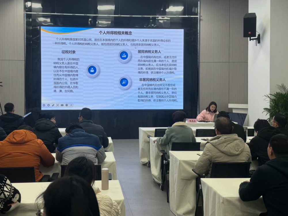 本次培訓(xùn)旨在介紹與每位員工息息相關(guān)的個(gè)人所得稅業(yè)務(wù)知識(shí)。陳晶晶詳細(xì)闡述了個(gè)人所得稅的概念、征稅范圍、稅率、計(jì)算方法、專項(xiàng)附加扣除及匯算清繳等相關(guān)知識(shí),會(huì)上宣貫了“財(cái)政部、稅務(wù)總局關(guān)于在全國范圍實(shí)施個(gè)人養(yǎng)老金個(gè)人所得稅優(yōu)惠政策的公告”(財(cái)政部、稅務(wù)總局公告2024年第21號(hào)),重點(diǎn)對(duì)個(gè)人專項(xiàng)附加扣除常見問題進(jìn)行了講解。