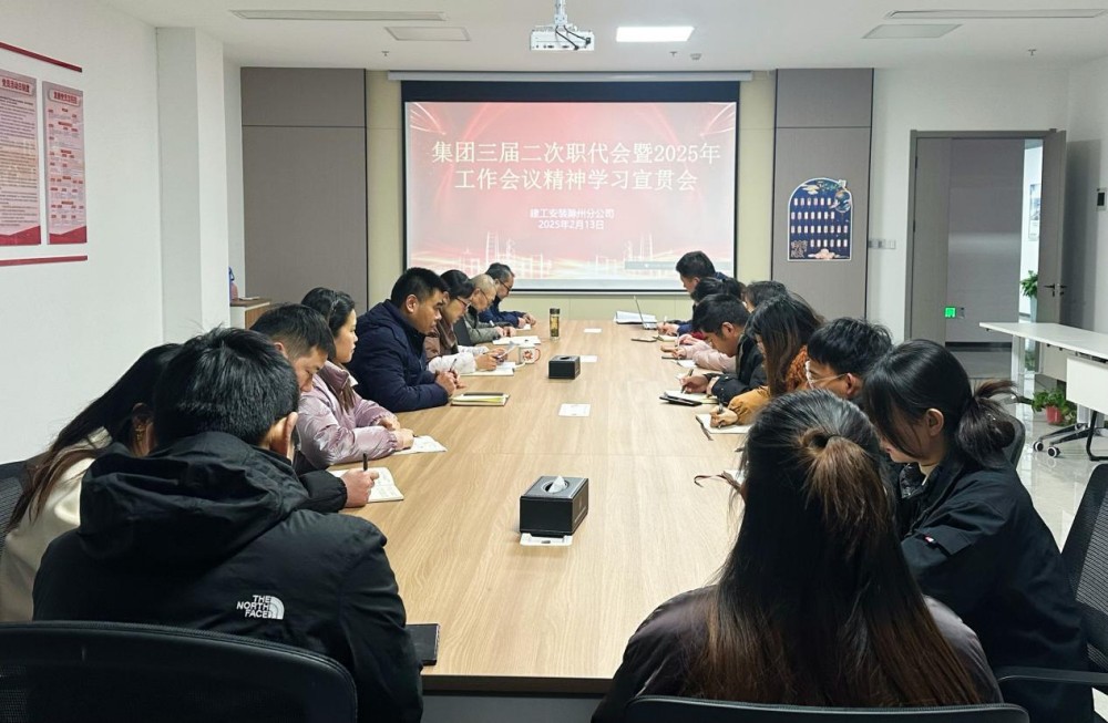 2月13日上午,建工安裝滁州分公司分別在機關(guān)和項目部組織召開專題會議傳達學(xué)習(xí)建工控股三屆二次職代會暨2025年工作會議精神,分公司領(lǐng)導(dǎo)班子成員、機關(guān)全體員工和新橋智能制造產(chǎn)業(yè)園項目員工參加會議。
