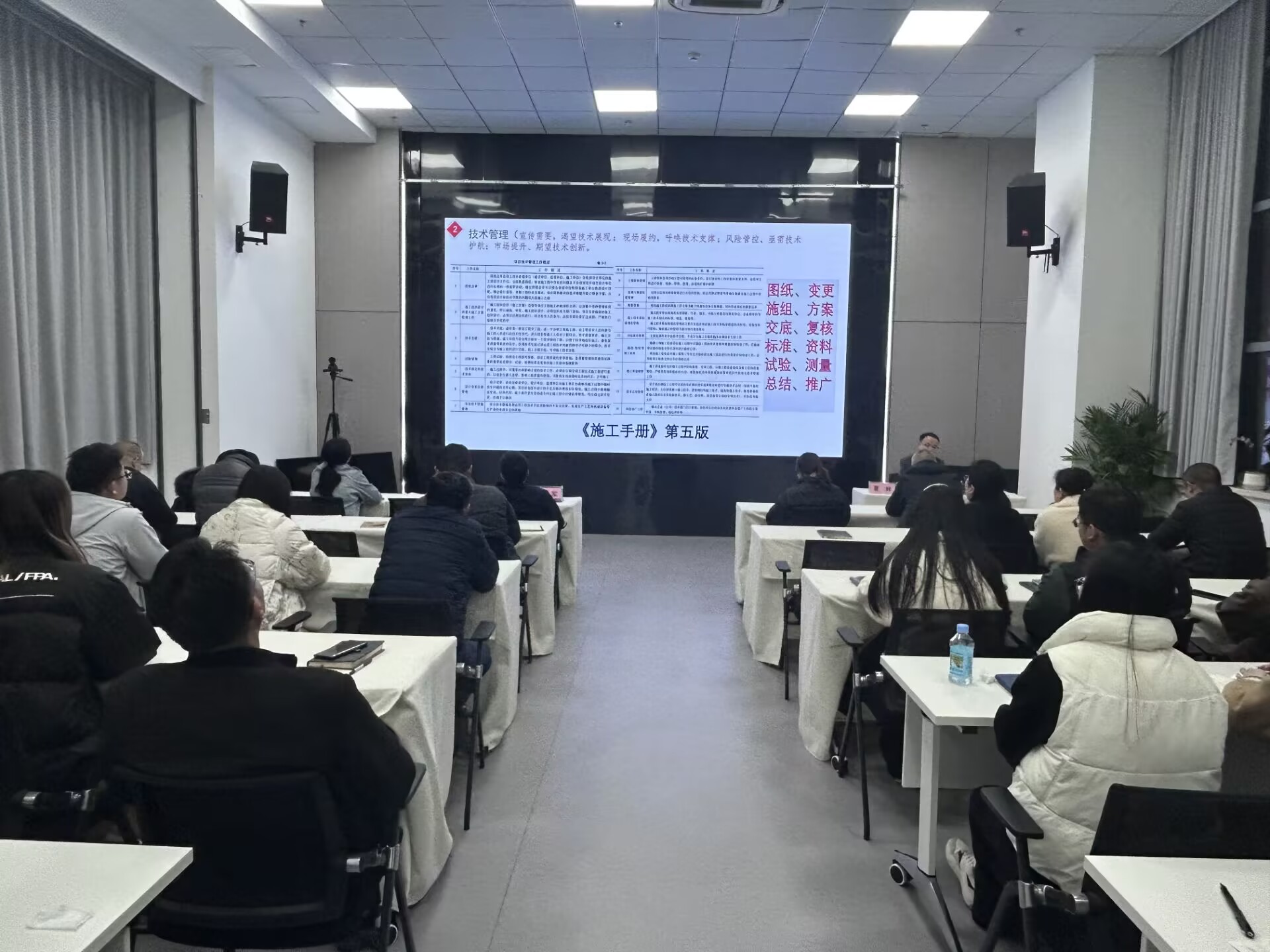 夏輝以中央發(fā)布的《一張思維導(dǎo)圖帶大家看2025年政府工作十大任務(wù)》的切入點,強調(diào)了高質(zhì)量發(fā)展和創(chuàng)新驅(qū)動的重要性。隨后他從技術(shù)管理、機電工程體系、機電工程安裝工藝細部節(jié)點做法優(yōu)選、AI應(yīng)用等方面對機電工程基礎(chǔ)知識進行了細致解讀,講解了技術(shù)在企業(yè)運營中的核心作用。就《聚焦機電主責(zé)主業(yè) 走“專精特強”之路行動方案》(第一版)與參培人員進行深入交流。