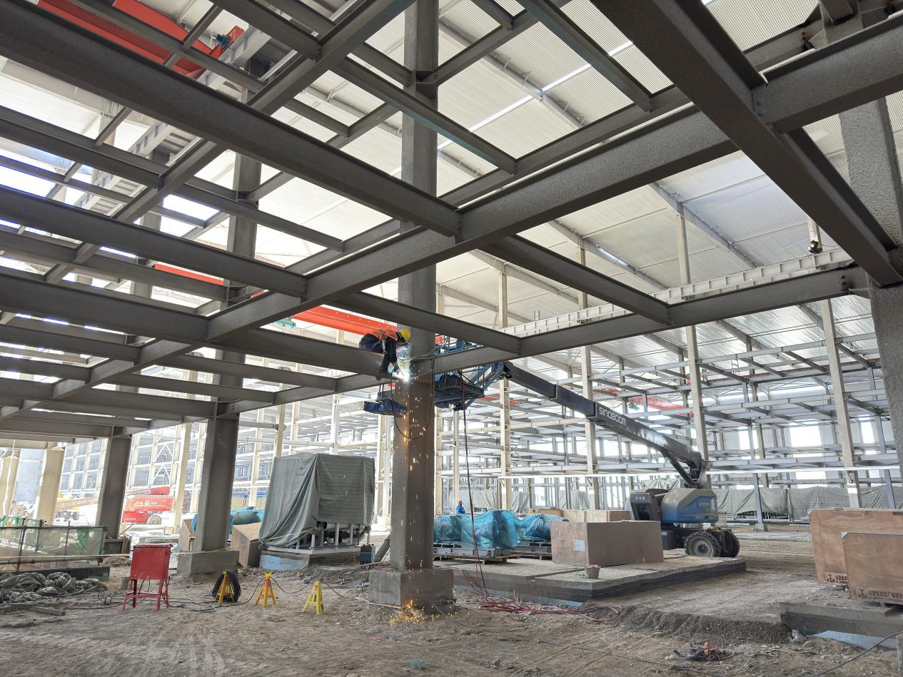 項(xiàng)目地處高海拔鹽湖區(qū),缺氧且淡水匱乏,施工環(huán)境惡劣,資源保障困難。面對(duì)不利因素,項(xiàng)目團(tuán)隊(duì)迎難而上,積極尋找解決方案,為項(xiàng)目順利推進(jìn)筑牢基礎(chǔ)。截至目前,項(xiàng)目已取得顯著階段性成果,廠房主鋼構(gòu)全部完成,管廊鋼結(jié)構(gòu)完成約95%,防火涂料完成80%,屋面及墻面圍護(hù)結(jié)構(gòu)完成約50%,配電房裝飾裝修工作有序進(jìn)行,各項(xiàng)任務(wù)按計(jì)劃穩(wěn)步推進(jìn)。