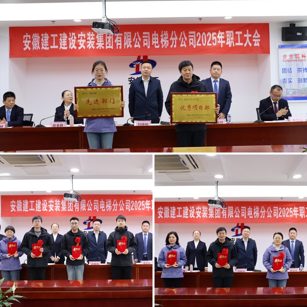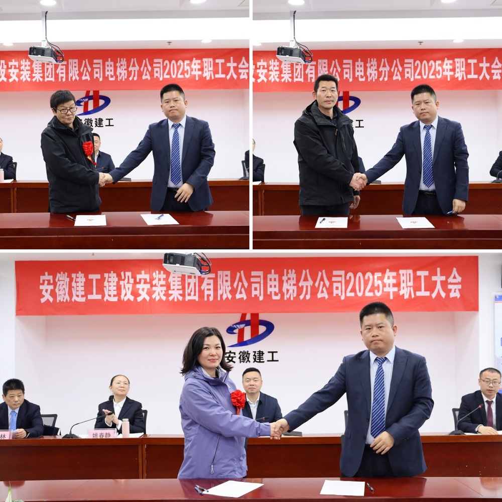 會(huì)上,宣貫了建工集團(tuán)三屆二次職代會(huì)暨2025年工作會(huì)議和建工安裝十七屆五次職代會(huì)精神,與分公司市場(chǎng)開發(fā)部及所屬各片區(qū)項(xiàng)目部簽訂了《2025年度經(jīng)濟(jì)責(zé)任書》,表彰了電梯分公司2024年度先進(jìn)集體和先進(jìn)個(gè)人。