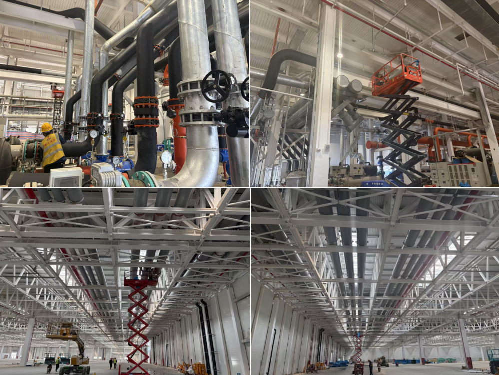 自一季度以來,項(xiàng)目部以“2025開局即決戰(zhàn)”的昂揚(yáng)斗志,迅速掀起“大干快上”施工熱潮。對(duì)各車間、各系統(tǒng)剩余工程量展開全面梳理統(tǒng)計(jì),同時(shí)針對(duì)剩余工程量堅(jiān)持每日召開專題會(huì),以倒排計(jì)劃為“發(fā)令槍”,對(duì)照時(shí)間節(jié)點(diǎn)要求各班組加班加點(diǎn)、不折不扣完成。截至發(fā)稿,車間一大面積施工基本完成,形象進(jìn)度完成約96%;車間二形象進(jìn)度完成約90%;車間四形象進(jìn)度完成約92%;站房一各設(shè)備管道基本安裝完成,正在調(diào)試中,形象進(jìn)度完成約90%。目前,各車間工藝生產(chǎn)均已進(jìn)場(chǎng),燃?xì)忮仩t點(diǎn)火成功、空壓站完成試運(yùn)行、工藝24h冷凍水、恒溫恒濕空調(diào)均已投入使用;各車間工藝區(qū)送電已到位、供水完成。