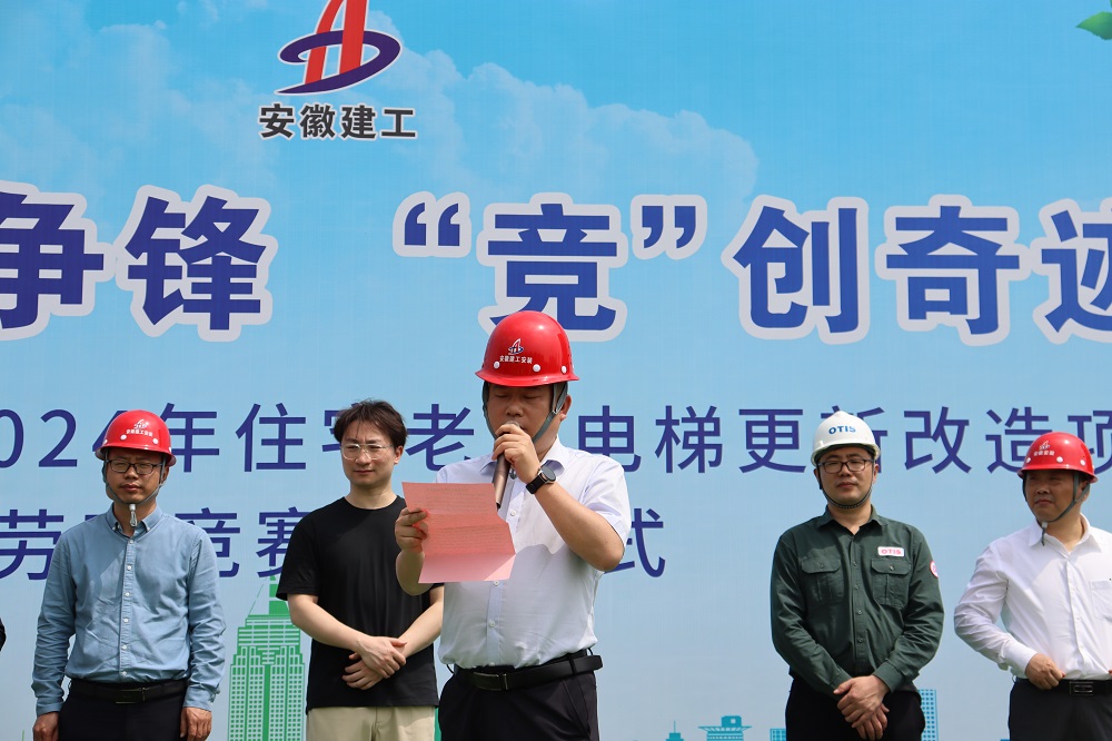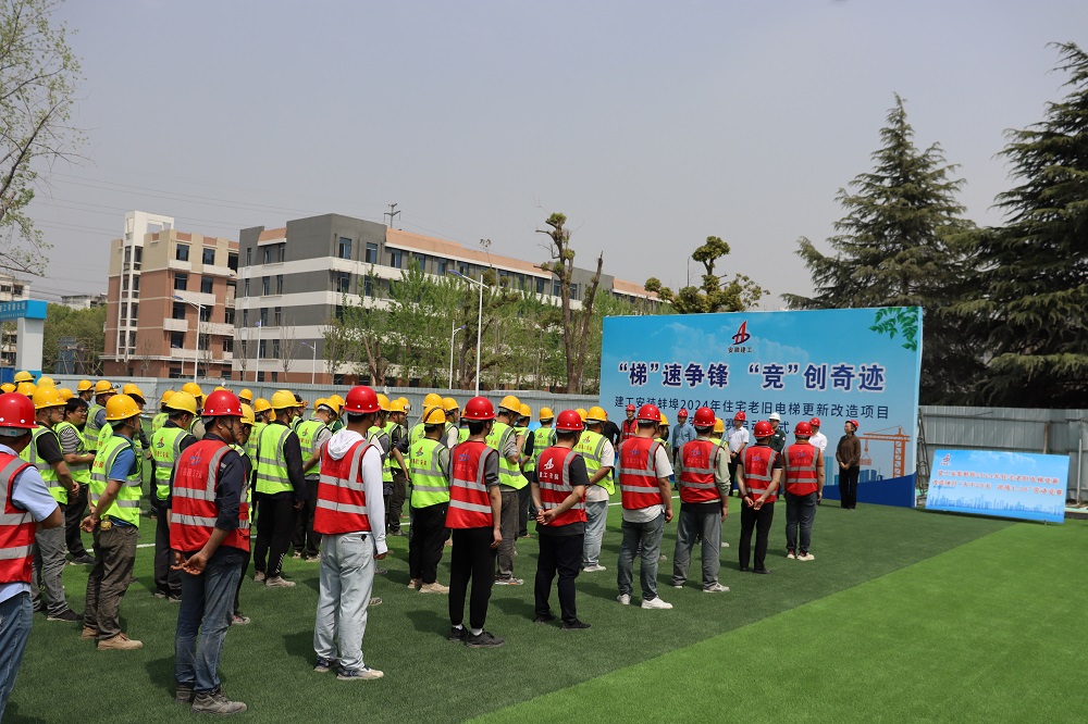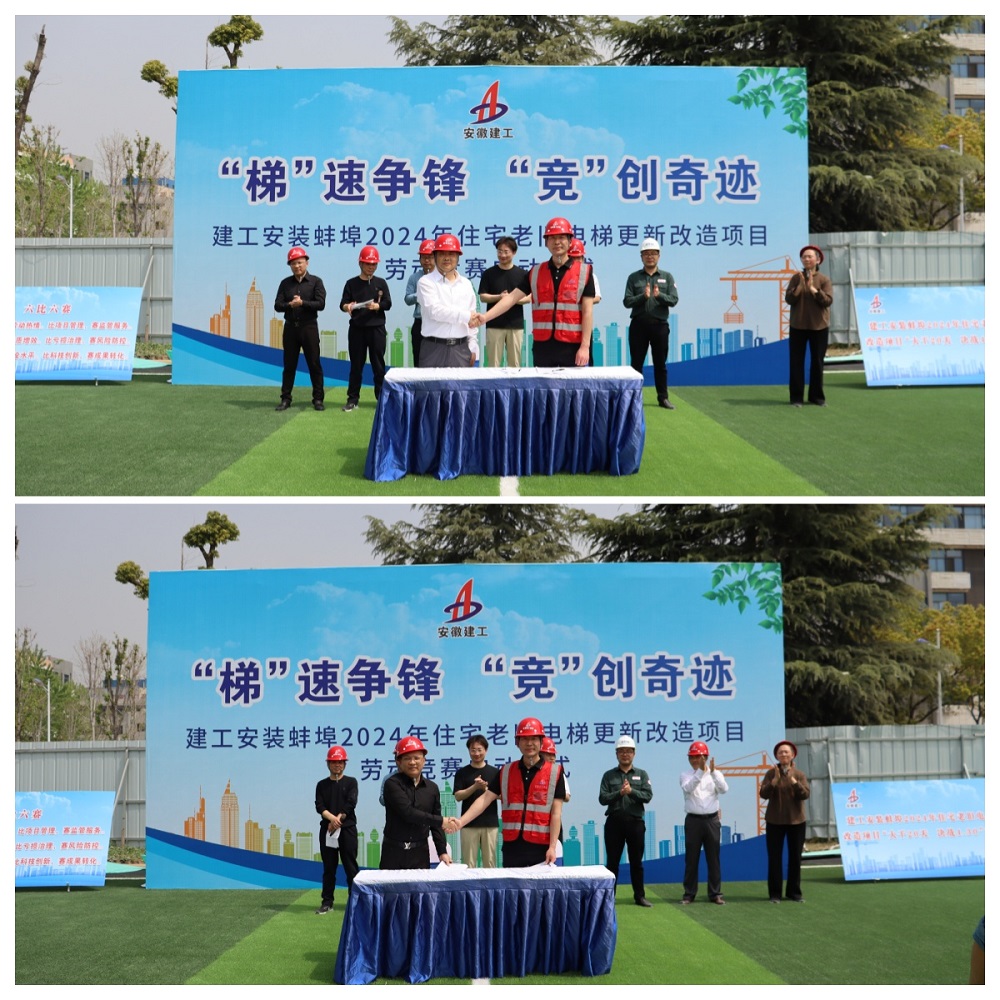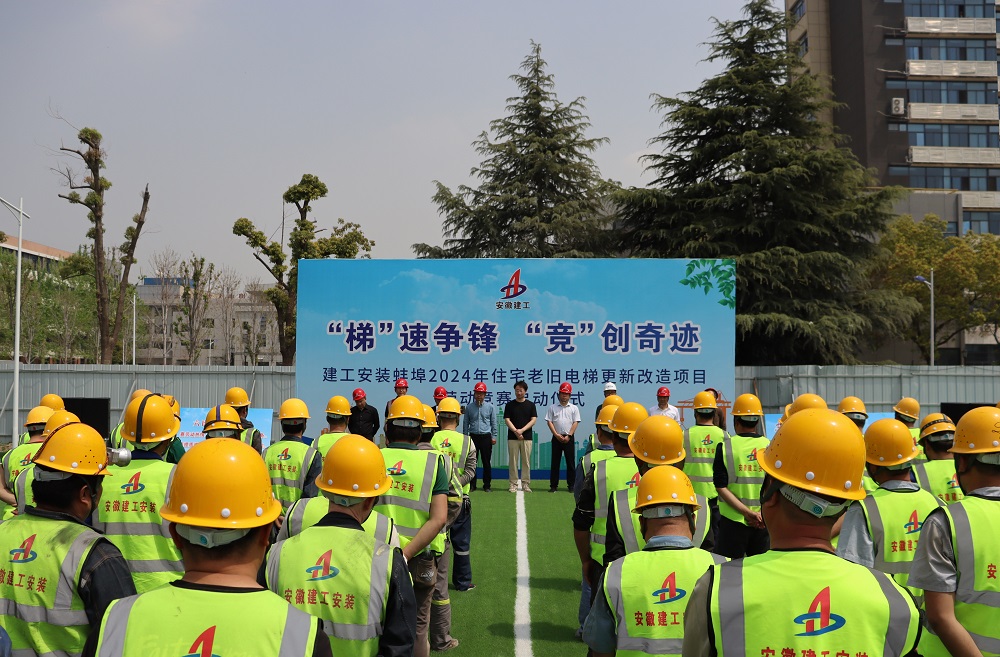 為貫徹集團和公司兩級職代會精神,落實公司勞動競賽活動相關工作要求,加快工程建設進度,不斷提高項目管理和建設水平,4月10日,建工安裝電梯分公司蚌埠2024年住宅老舊電梯更新改造項目舉行了以“梯”速爭鋒 “競”創(chuàng)奇跡為主題的勞動競賽啟動儀式,正式吹響了“大干20天,決戰(zhàn)4.30”勞動競賽的奮進號角。蚌埠市城市投資控股有限公司代表、分公司班子成員、項目部管理人員、各參建單位代表及作業(yè)人員共130余人參加活動。