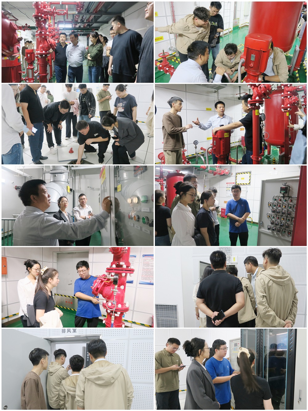 此次觀摩采取“現(xiàn)場(chǎng)看、聽(tīng)匯報(bào)、議亮點(diǎn)、找差距”的方式,先后深入項(xiàng)目雨水泵房、消防泵房、配電房等觀摩點(diǎn)。每到一處,觀摩人員均認(rèn)真聽(tīng)取項(xiàng)目負(fù)責(zé)人關(guān)于項(xiàng)目建設(shè)、工藝創(chuàng)新、安全生產(chǎn)及成果轉(zhuǎn)化等方面的匯報(bào),詳細(xì)詢問(wèn)項(xiàng)目推進(jìn)中的難點(diǎn)堵點(diǎn),并圍繞施工流程優(yōu)化、成本管控、質(zhì)量把關(guān)等關(guān)鍵環(huán)節(jié)展開(kāi)交流探討。其中,項(xiàng)目的BIM技術(shù)及智慧建筑技術(shù)應(yīng)用、綜合管線布置、設(shè)備接地、泵體接地、橋架內(nèi)線纜敷設(shè)等創(chuàng)新做法成為現(xiàn)場(chǎng)交流的焦點(diǎn),參觀人員紛紛拍照記錄、駐足研討。