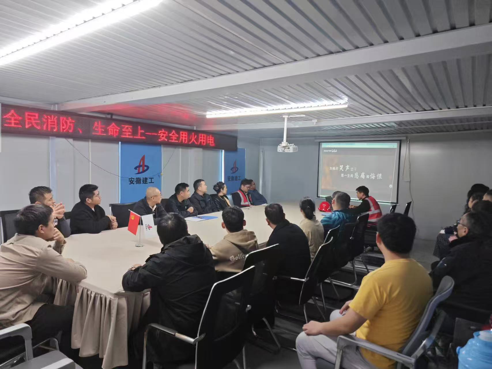 響應2025年“全民消防、生命至上——安全用火用電”消防月號召,11月10日下午,建工安裝公路公司在蘇滁文體中心施工項目部組織消防應急演練,機關及在滁項目部共30余人參加。