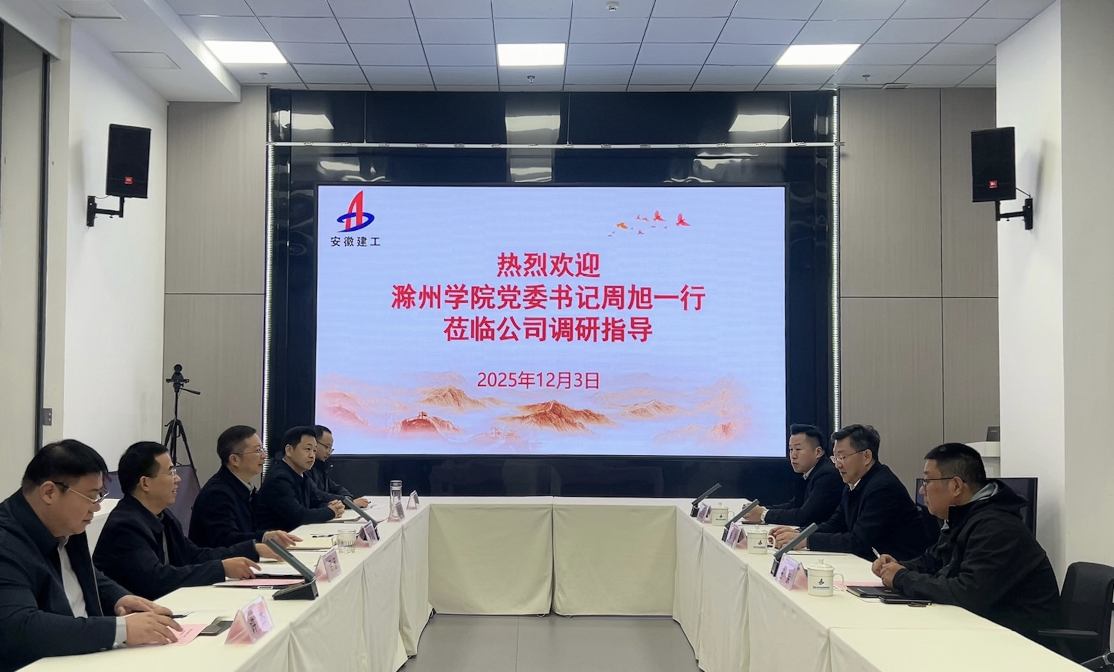 12月3日下午,滁州學院黨委書記周旭一行到訪建工安裝,建工安裝黨委書記、董事長朱珍宏熱情接待并舉行工作座談。